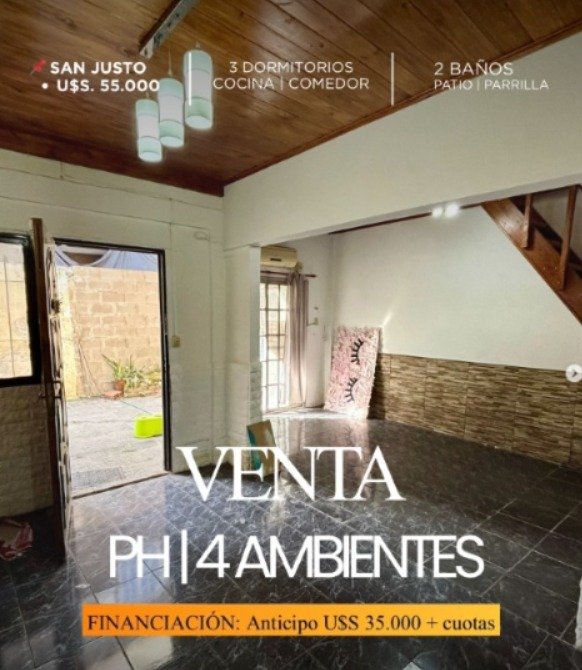 Venta, PH en Isidro Casanova con Posibilidad de Financiación, situado sobre la calle Alicante 1837, a 30 metros de Venezuela. Entre las calles Chenaut y Charrúa. Acceso a la propiedad por pasillo individual Amplio departamento TIPO PH. Desarrollado en Dos plantas con entrada independiente. La propiedad cuenta con: En PLANTA BAJA: Encontramos un Living – Comedor, Cocina, Baño, Lavadero y Patio trasero con Parrilla y Quincho. En PLANTA ALTA: 3 Habitaciones y Baño. - VALOR DE VENTA: U$S. 55.000 - POSIBILIDAD DE FINANCIACION: U$S. 35.000 + Resto financiado a conversar. Acepta auto en parte de pago. Comercializa ARZAC Estudio Inmobiliario 📲 WhatsApp: 11 5654-1113 COL N° 827 CMCPLM.